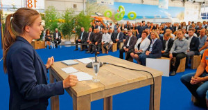 DoldeMedien-Geschäftsführerin Tanja Herkert stimmt das Publikum auf das Jubiläum ein.